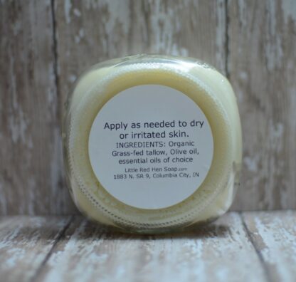INGREDIENTS: Organic grass fed tallow, Organic Olive oil, Essential oils or fragrance of choice